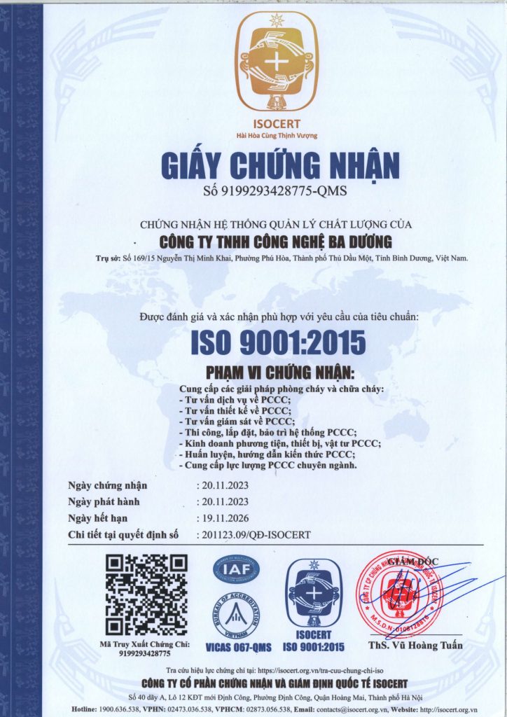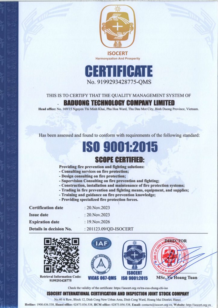 Ngay từ những ngày đầu, Ba Dương đã định hướng phát triển dựa trên tuân thủ quy định pháp lý, chuẩn kỹ thuật và hiệu quả vận hành thực tế. Các giải pháp PCCC được xây dựng theo hướng đồng bộ, phù hợp với tiêu chuẩn hiện hành, giúp doanh nghiệp và chủ đầu tư kiểm soát rủi ro cháy nổ, đảm bảo an toàn cho con người và tài sản trong suốt quá trình khai thác công trình.